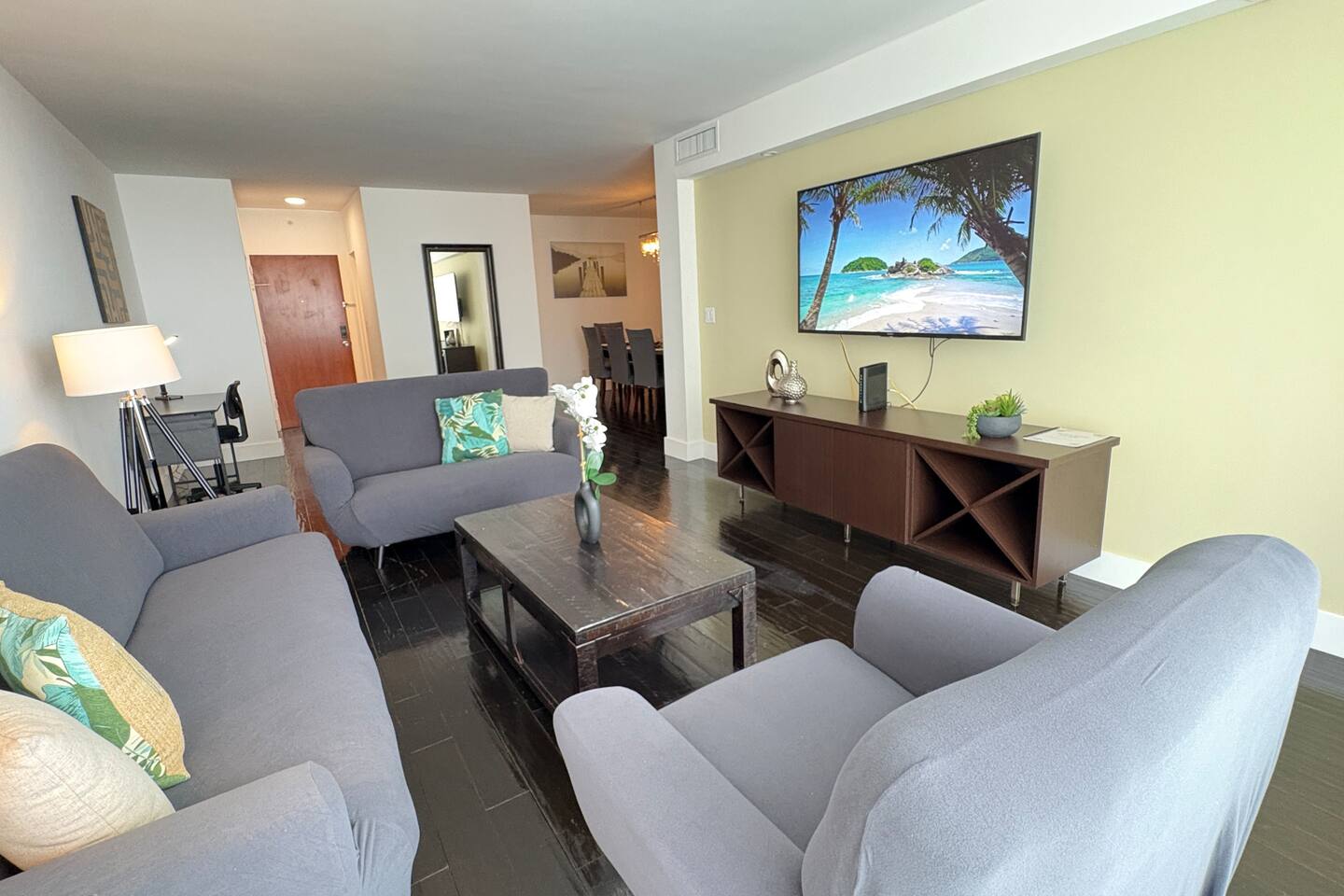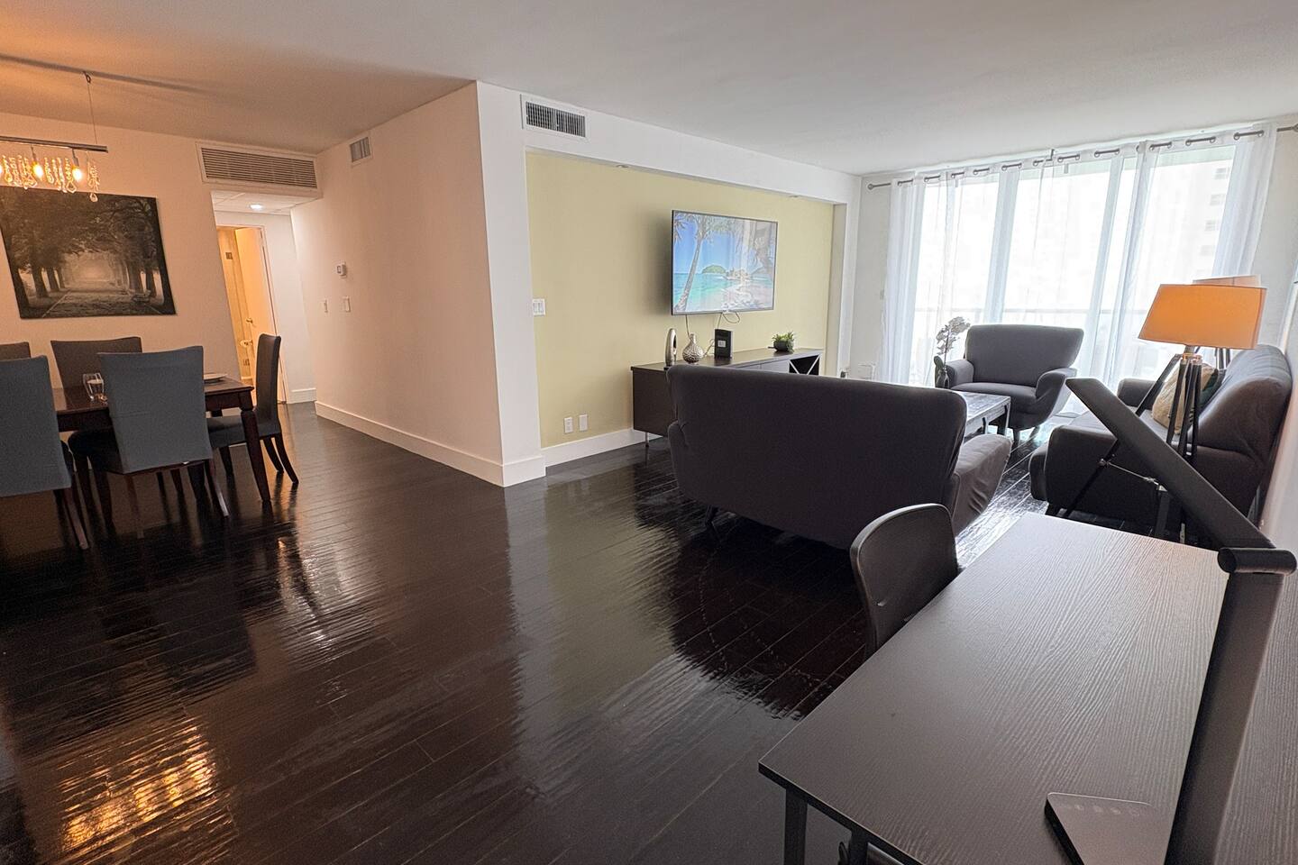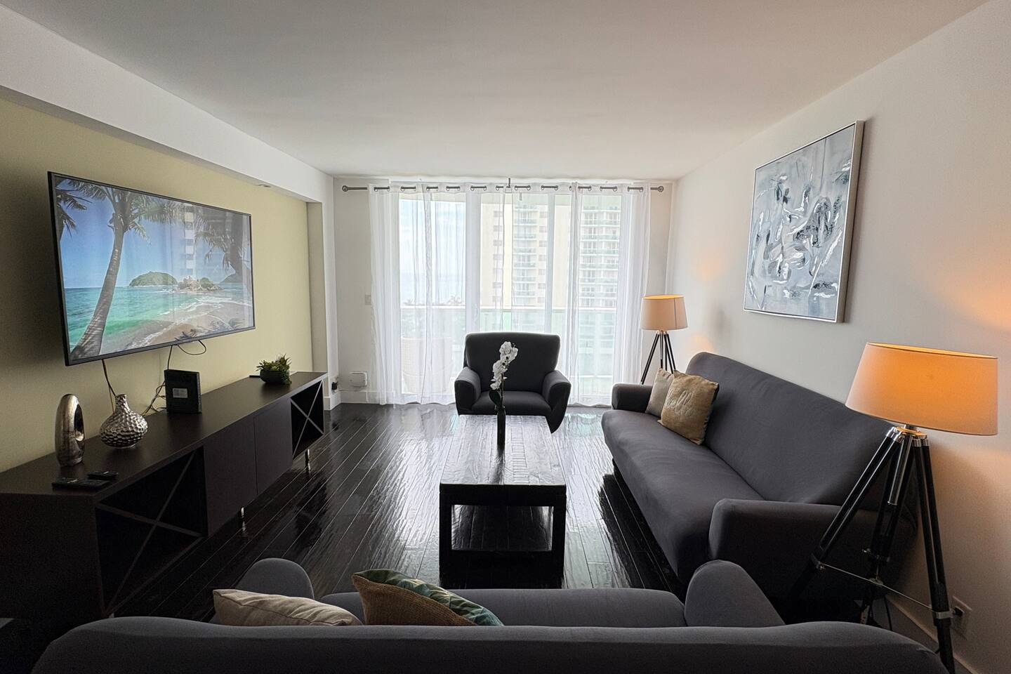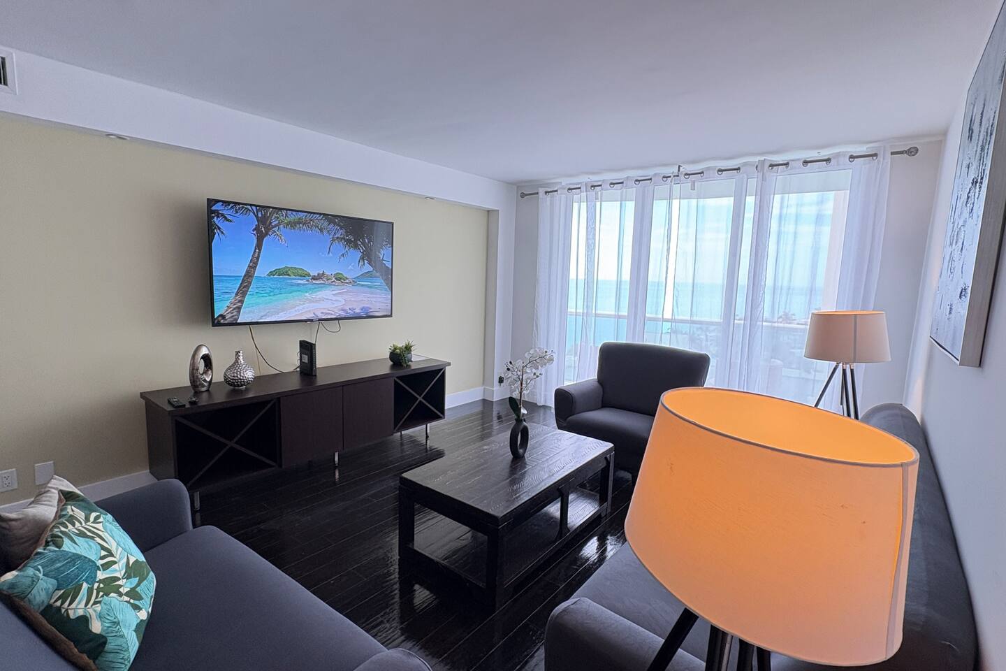 ROOMS: This apartment sleeps 6 guests. Please see below for bed count: Room 1: King bed with ocean view (sleeps 2) Room 2: 2 Queen beds with ocean view (sleeps 4) BATHROOMS: 1.5 bathrooms fully stocked with shampoo, conditioner, body wash, hand soap, wash cloths, towels, and a hair dryer. KITCHEN AND DINING: Fully stocked with pots & pans, plates, cups, mugs, utensils, cooking tools, coffee pot, toaster, oven, refrigerator, dishwasher, and microwave. The dining area has seating for 8 with all the necessary dinnerware. OUTDOOR SPACE: Private balcony with ocean view and seating to enjoy the views. PARKING PRICES: Daily Parking: $20 Overnight Parking: $ Days: $ Days: $ Days: $ Days: $175 Payment must be made upon check-in. *A $20 cash deposit is required for the hang tag, which will be refunded upon its return* MANDATORY FOB KEY: FOB keys will give you access in the building. Cost: $30 per FOB key FOB Allocation: Each 2 adults requires 1 FOB key. 1-2 adults: 1 FOB key 3-4 adults: 2 FOB keys 5-6 adults: 3 FOB keys Note: An adult is anyone 13 years or older. BUILDING AMENITIES: • Direct beach access • 2 heated oceanfront pools • Fitness center / gym • Business center • 24/7 security and concierge • Valet and self-parking (fees apply) • Laundry facilities on each floor • Mini market and vending machines • Lounge areas and social rooms PACKAGES: Administrative Fee: $7 for package receipt WHAT'S INCLUDED: Free wifi, Smart TVs, we provide a starter pack of essentials (toilet paper, paper towels, & toiletries) for your first few nights. You may need to purchase more depending on use. DRIVING DISTANCES (depending on traffic): Wynwood: 22 miles – 30 mins Hard Rock Stadium: 15 miles – 20 mins Downtown Miami: 20 miles – 25 mins Brickell: 19 miles – 25 mins Fort Lauderdale-Hollywood Airport: 10 miles – 15 mins Jackson Memorial Hospital: 18 miles – 25 mins Hard Rock Hotel & Casino: 15 miles – 20 mins University of Miami: 16 miles – 22 mins LoanDepot Park: 17 miles – 23 mins Little Havana: 18 miles – 25 mins Coconut Grove: 17 miles – 23 mins Coral Gables: 16 miles – 22 mins Dolphin Mall (Miami): 29 miles – 34 mins Miami International Airport: 20 miles – 25 mins Miami Beach: 24 miles – 33 mins South Beach & Port Miami: 25 miles – 35 mins Key Largo: 65 miles – 1hr 15 mins.