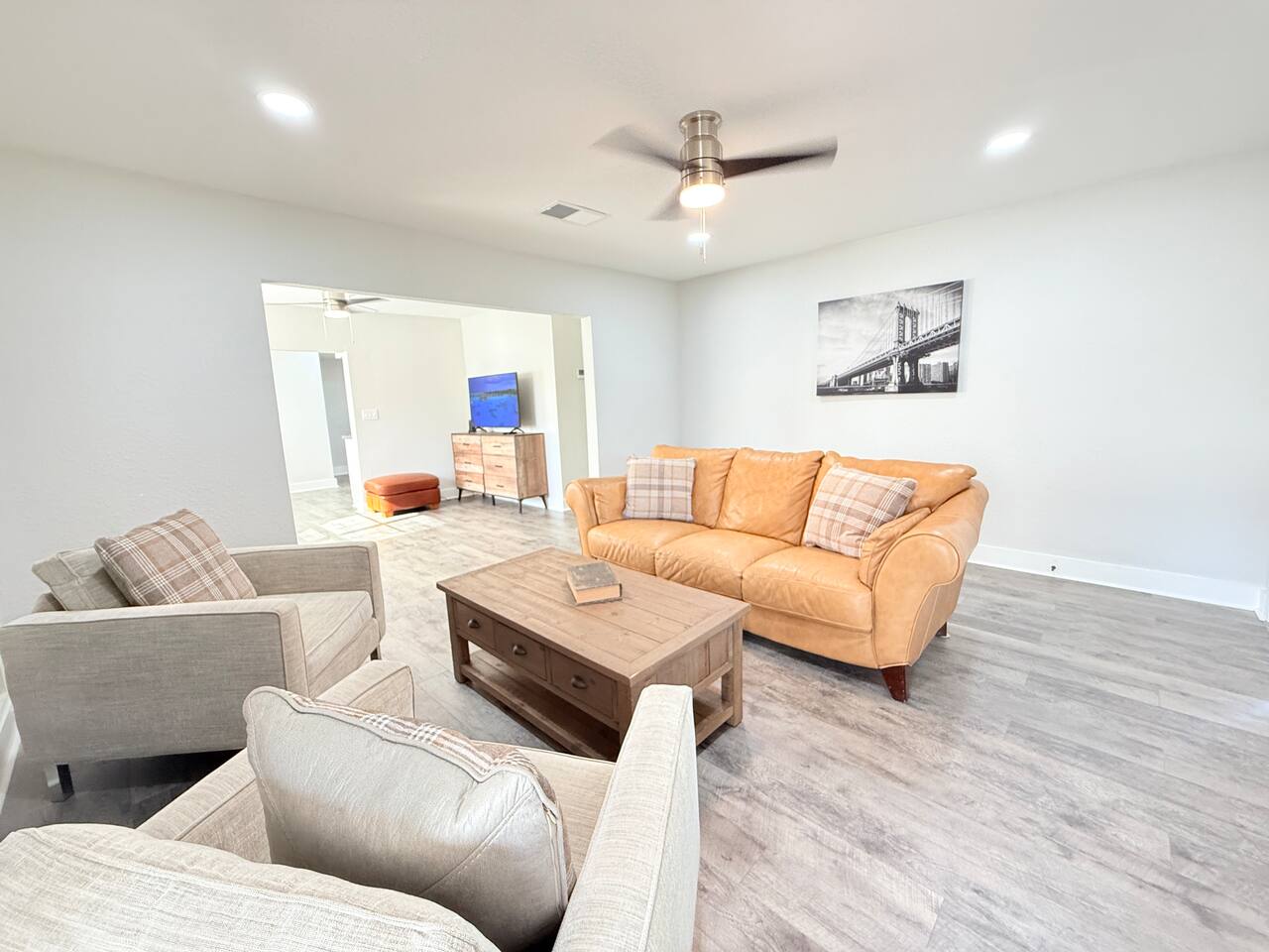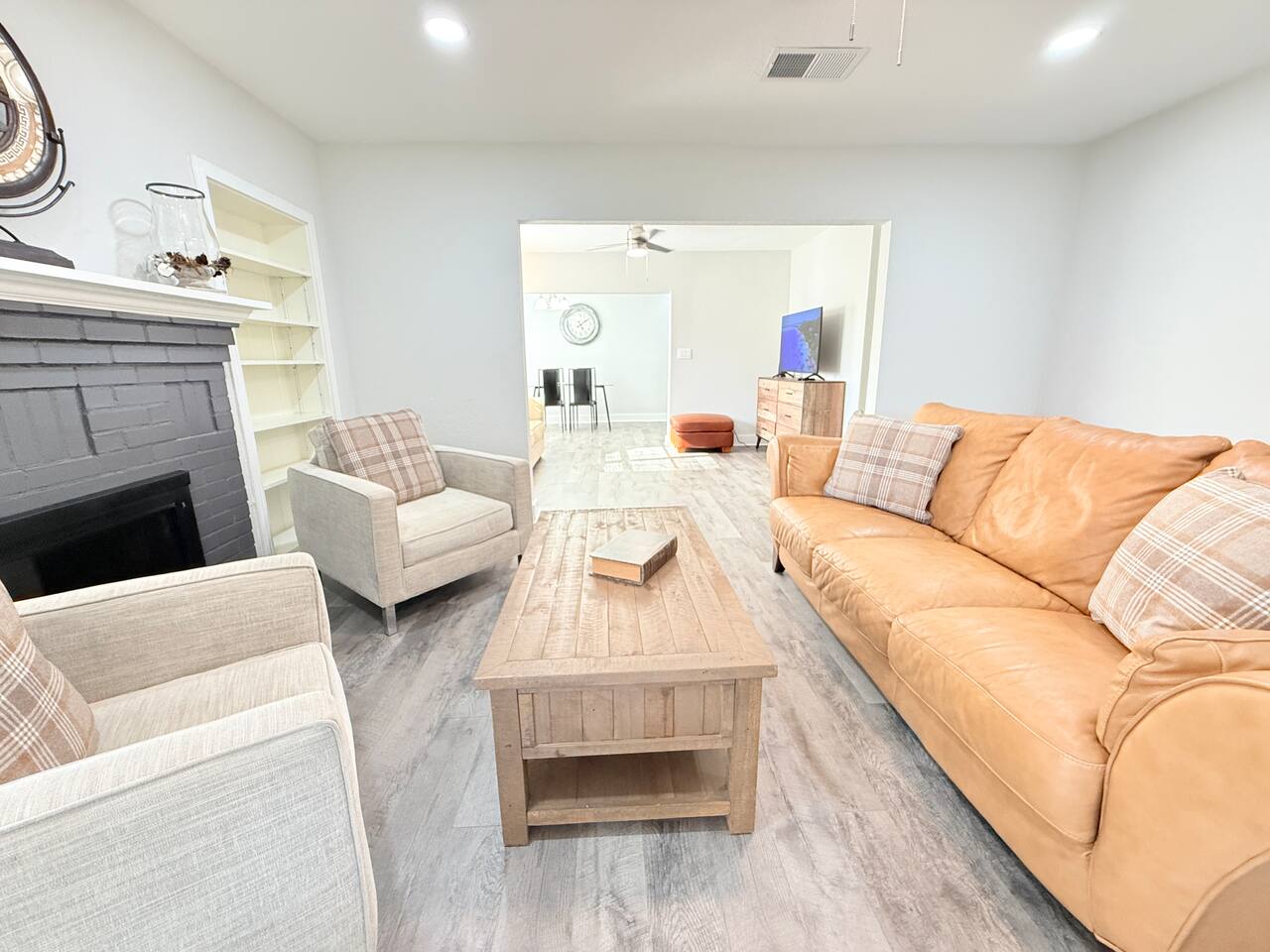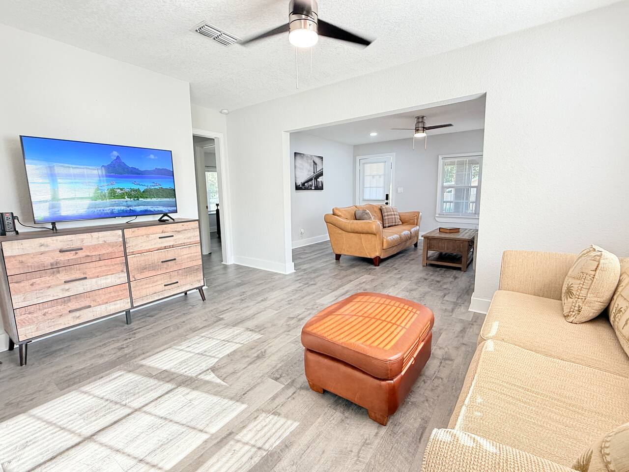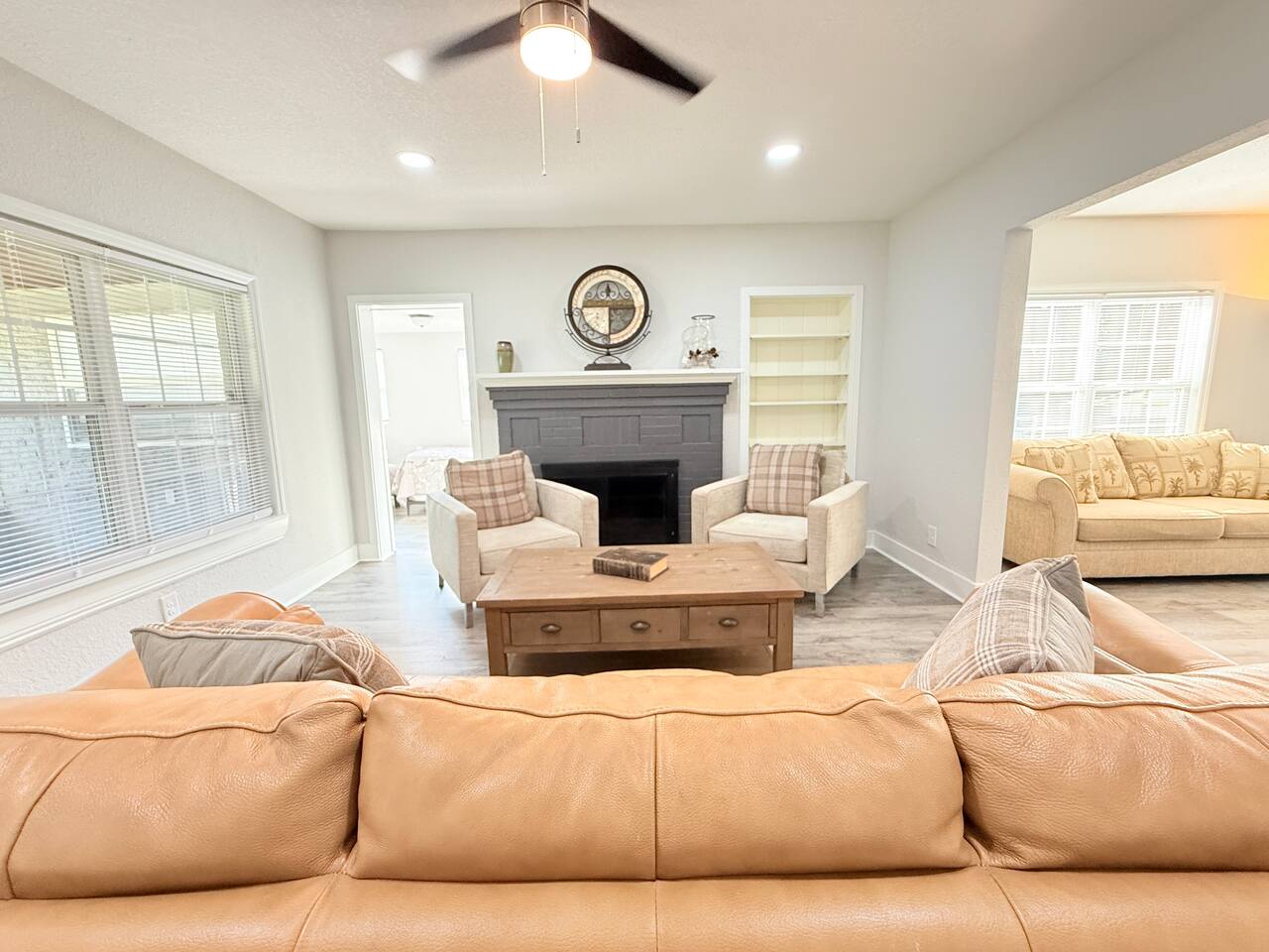 π‘ THE SPACE Spacious, single-story home designed for groups, anglers, and families. With dedicated boat parking and a layout that balances privacy with gathering space, this is your perfect Leesburg launchpad. π SLEEPING ARRANGEMENTS (Sleeps 9) β’ Bedroom 1 (Family Suite): Queen Bed + Twin Bed β’ Bedroom 2: Queen Bed + Smart TV β’ Bedroom 3 (Work/Study): Queen Bed + Smart TV + Dedicated Workspace β’ Living Room: Pull-out Sofa Bed (Comfortably sleeps 2) β’ Fresh linens, pillows, and blankets provided for all beds. πΏ BATHROOMS β’ 2 Full Bathrooms: Clean and bright. β’ Stocked with Essentials: Shampoo, conditioner, body wash, hand soap, plush towels, and a hair dryer so you can pack lighter. π³ KITCHEN & DINING β’ Fully Equipped: Everything you need to cook a full meal (oven, stove, microwave, toaster). β’ Eat-In: Includes pots, pans, plates, utensils, and a dishwasher for easy cleanup. β’ Coffee Station: Drip coffee maker with mugs ready for your morning brew. π PARKING (Rare Find!) β’ Driveway: Free parking for up to 6 cars. β’ Boat/RV Friendly: Secure, GATED parking specifically for your boat, trailer, or RV. No marina fees, no stress! β¨ AMENITIES & EXTRAS β’ Fast WiFi: 267 Mbps (Perfect for Zoom calls or streaming). β’ Laundry: In-unit Washer & Dryer. β’ Starter Pack: We provide a courtesy supply of toilet paper, paper towels, and trash bags to get your trip started. π LOCATION HIGHLIGHTS β’ 2 Mins: Venetian Gardens & Lake Harris (Boat Ramps, Splash Pad & Fishing) β’ 2 Mins (Drive) / 15 Mins (Walk): Historic Downtown Leesburg shops & dining β’ 20 Mins: Mt. Dora (Antiques, Festivals & Restaurants) β’ 45 Mins: Orlando Attractions β’ 80 Mins: Disney World & Universal Studios