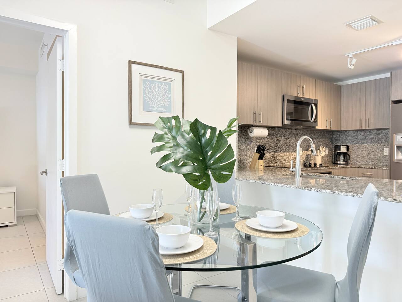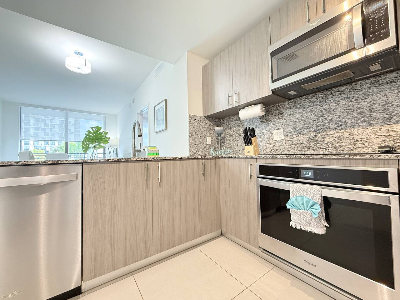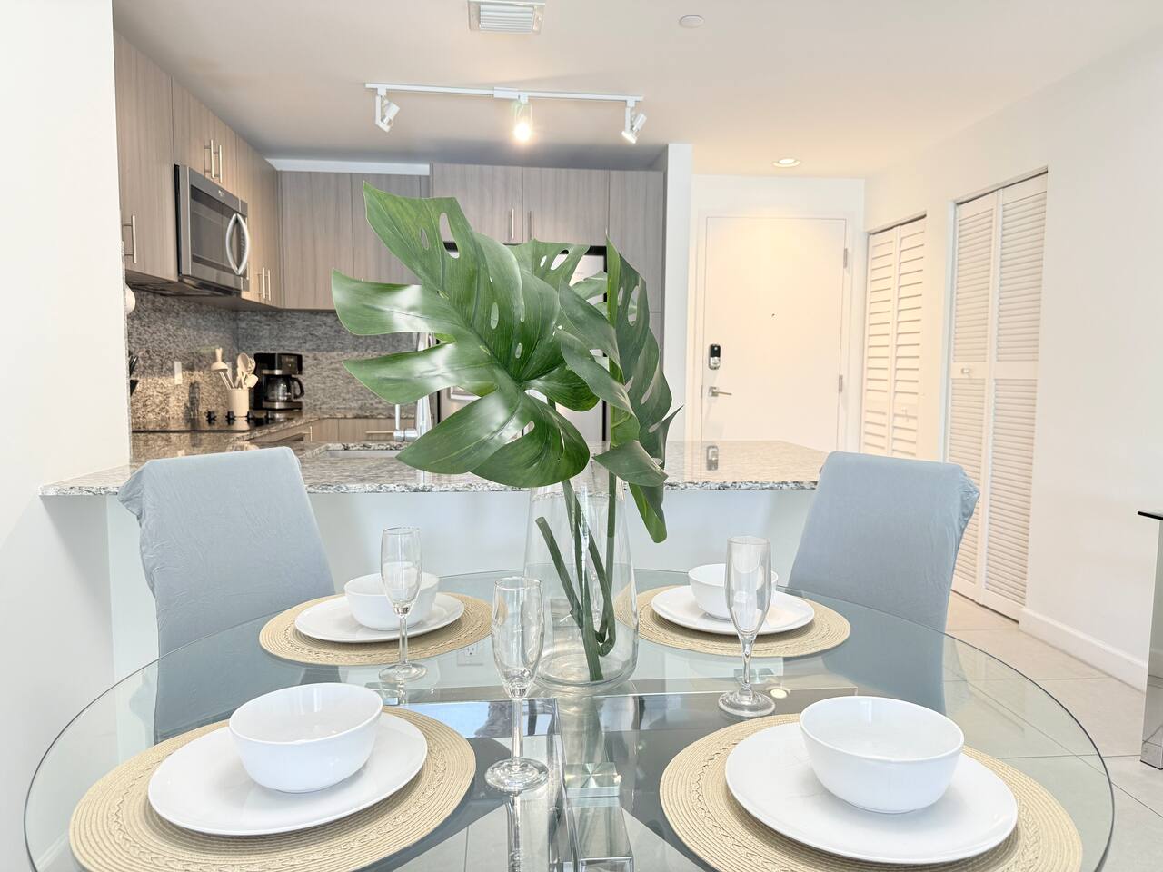ROOMS: This apartment sleeps 5 guests. Please see below for bed count: - Room 1: King bed with a smart TV and private bathroom attached. (Sleeps 2) - Room 2: King bed, Small Twin Couch Sleeper with a smart TV and private bathroom attached. (sleeps 3) BATHROOMS: 2 full bathrooms fully stocked with shampoo, conditioner, body wash, hand soap, wash cloths, towels, and a hair dryer. KITCHEN AND DINING: Fully stocked with pots & pans, plates, cups, mugs, utensils, cooking tools, coffee pot, toaster oven, oven, refrigerator, and microwave. The dining area has a table and a bar spaced with seating for 4, with all the necessary dinnerware. OUTDOOR SPACE: There is a spacious balcony area overlooking the city of Doral with lounge furniture to enjoy the South Florida weather. PARKING: Free parking is available in the building's car garage for 1 car. If you will be bringing an additional vehicle, there is paid street parking available in front of the building. WHAT'S INCLUDED: Free wifi, We provide a starter pack of essentials (toilet paper, paper towels, & toiletry) for your first few nights. You may need to purchase more depending on use. MAIL POLICY: We are unable to accept mail or packages at this unit as we do not have access to the mailbox. Please refrain from having mail delivered to this address. Instead, consider using a P.O. Box or an Amazon Locker for your deliveries! DRIVING DISTANCES: Miami International Airport: 20 mins Miami beach: 25 Mins Downtown Miami: 25 Mins Wynwood: 25 Mins Downtown Doral: 2 Mins Doral City Place: 5 mins Dolphin Mall: 10 mins International Mall: 8 mins Dadeland Mall: 15 mins