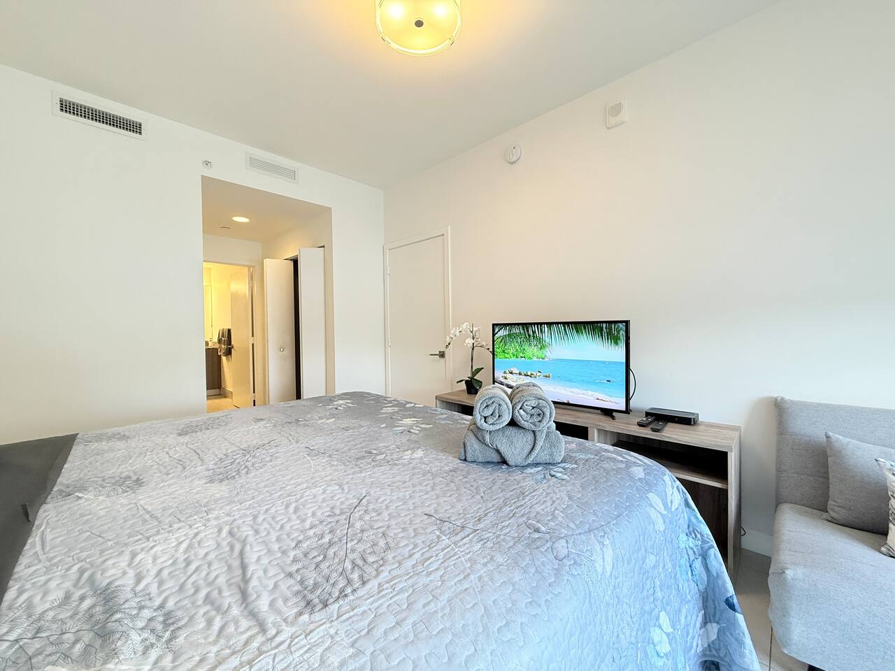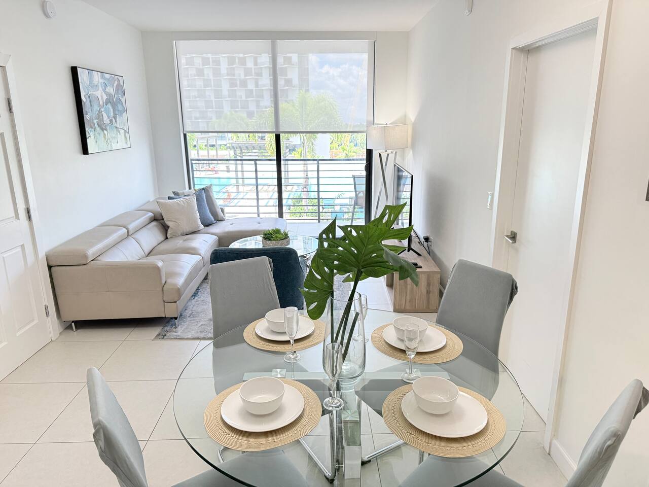 This 2-bedroom, 2-bath apartment sleeps 5 and is perfect for family or business stays. 2 King & 1 Small Twin Couch Sleeper 2 Full Bathrooms Fully Equipped Kitchen Balcony with Pool Views Pool & Gym Access Free Parking Walk to Downtown Doral, Close to Miami Beach, Downtown Miami, Wynwood, & Doral City Place. Perfect for relaxation & productivity Book your stay today and enjoy comfort & convenience!