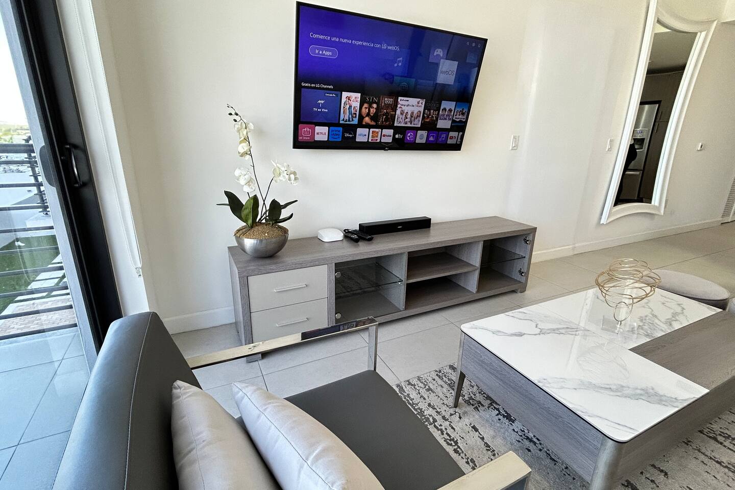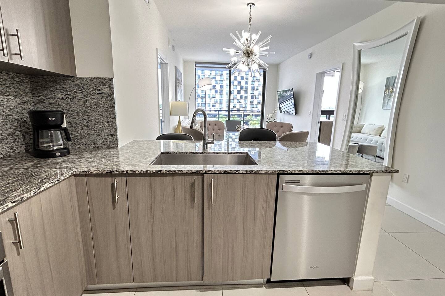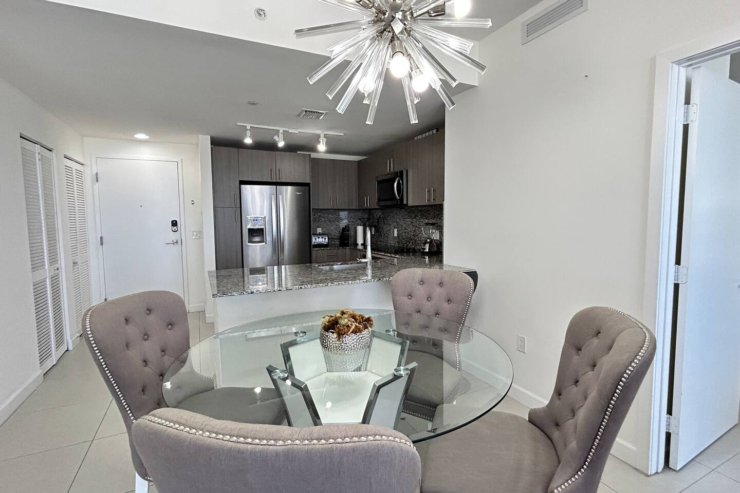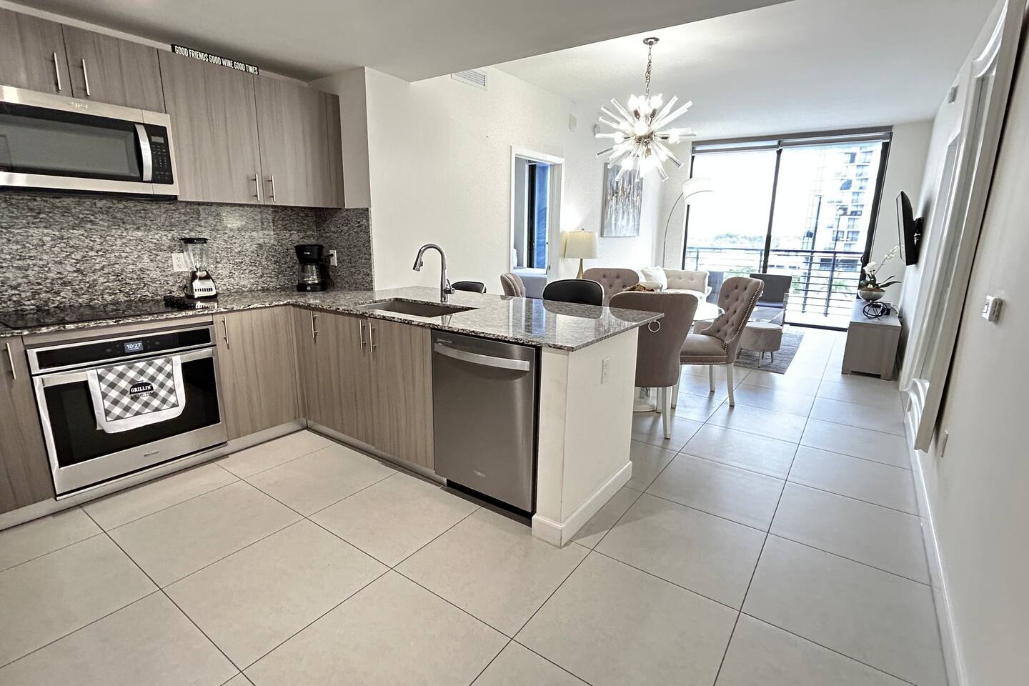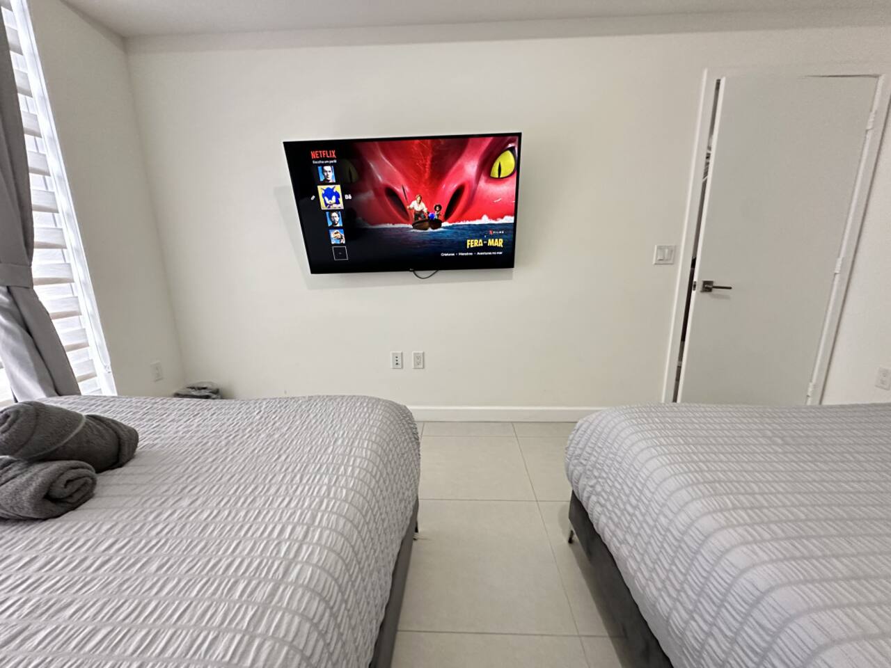 ROOMS: This apartment sleeps 6 guests. Please see below for bed count: - Room 1: King bed with a smart TV and private bathroom attached. (Sleeps 2) - Room 2: Two Queen beds with a smart TV and private bathroom attached. (sleeps 4) BATHROOMS: 2 full bathrooms fully stocked with shampoo, conditioner, body wash, hand soap, wash cloths, towels, and a hair dryer. KITCHEN AND DINING: Fully stocked with pots & pans, plates, cups, mugs, utensils, cooking tools, coffee pot, toaster, oven, refrigerator, and microwave. The dining area has a table and a bar spaced with seating for 6, with all the necessary dinnerware. OUTDOOR SPACE: There is a spacious balcony area overlooking the city of Doral with lounge furniture to enjoy the South Florida weather. PARKING: Free parking is available in the building's car garage for 1 car. If you will be bringing an additional vehicle, there is paid street parking available in front of the building. WHAT'S INCLUDED: Free wifi, We provide a starter pack of essentials (toilet paper, paper towels, & toiletry) for your first few nights. You may need to purchase more depending on use. MAIL POLICY: We are unable to accept mail or packages at this unit as we do not have access to the mailbox. Please refrain from having mail delivered to this address. Instead, consider using a P.O. Box or an Amazon Locker for your deliveries! DRIVING DISTANCES: Miami International Airport: 20 mins Miami beach: 25 Mins Downtown Miami: 25 Mins Wynwood: 25 Mins Downtown Doral: 2 Mins Doral City Place: 5 mins Dolphin Mall: 10 mins International Mall: 8 mins Dadeland Mall: 15 mins