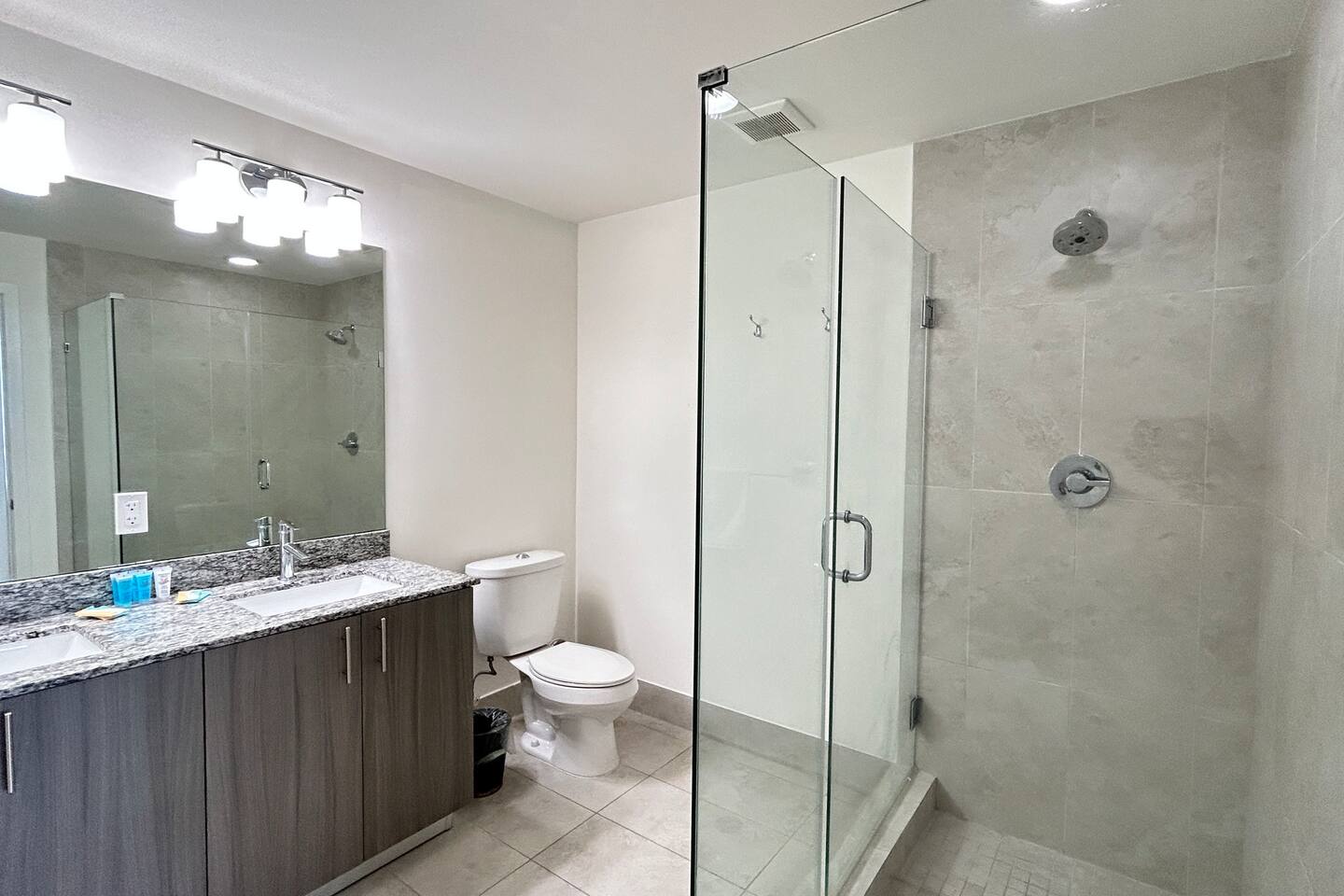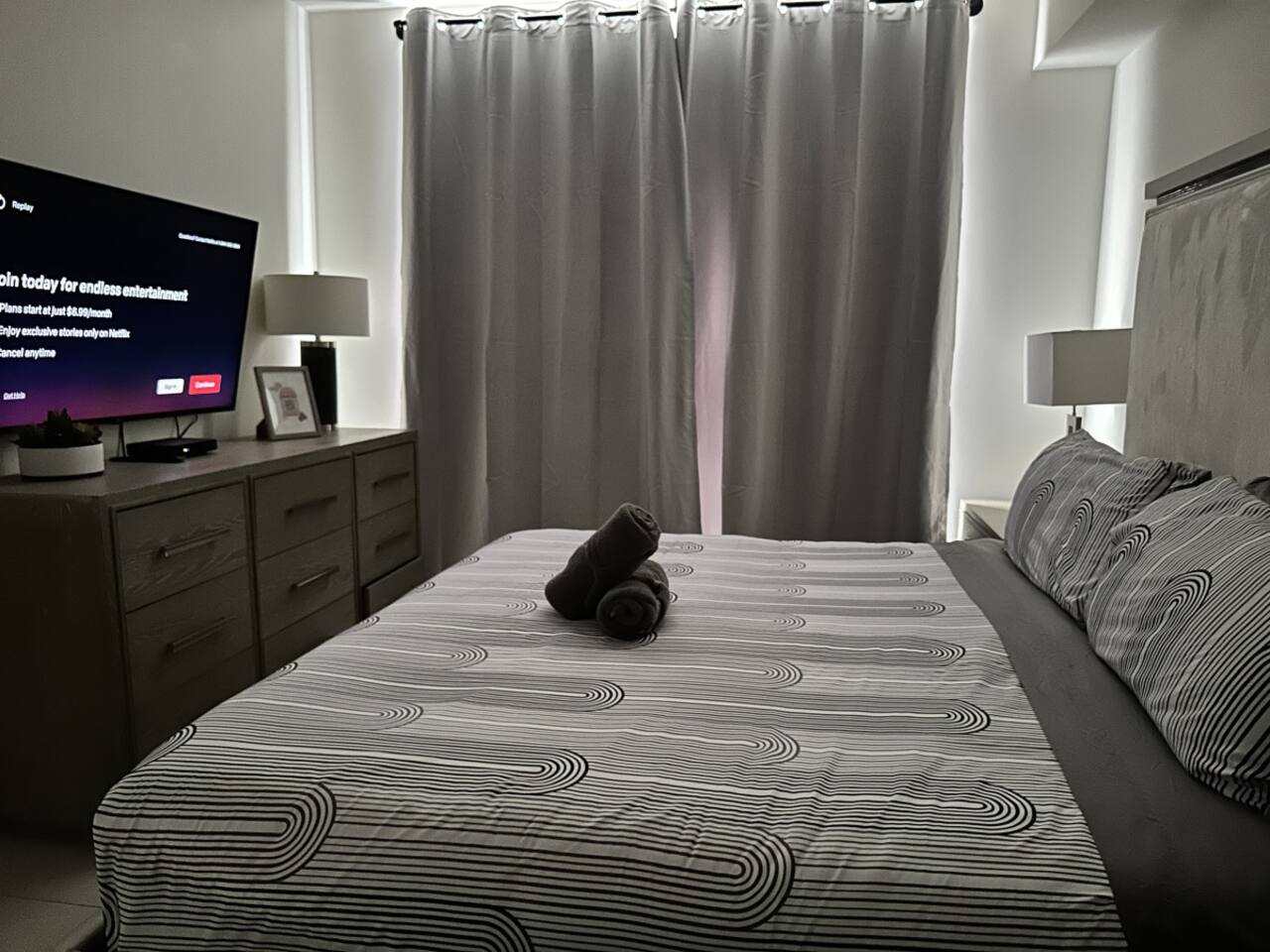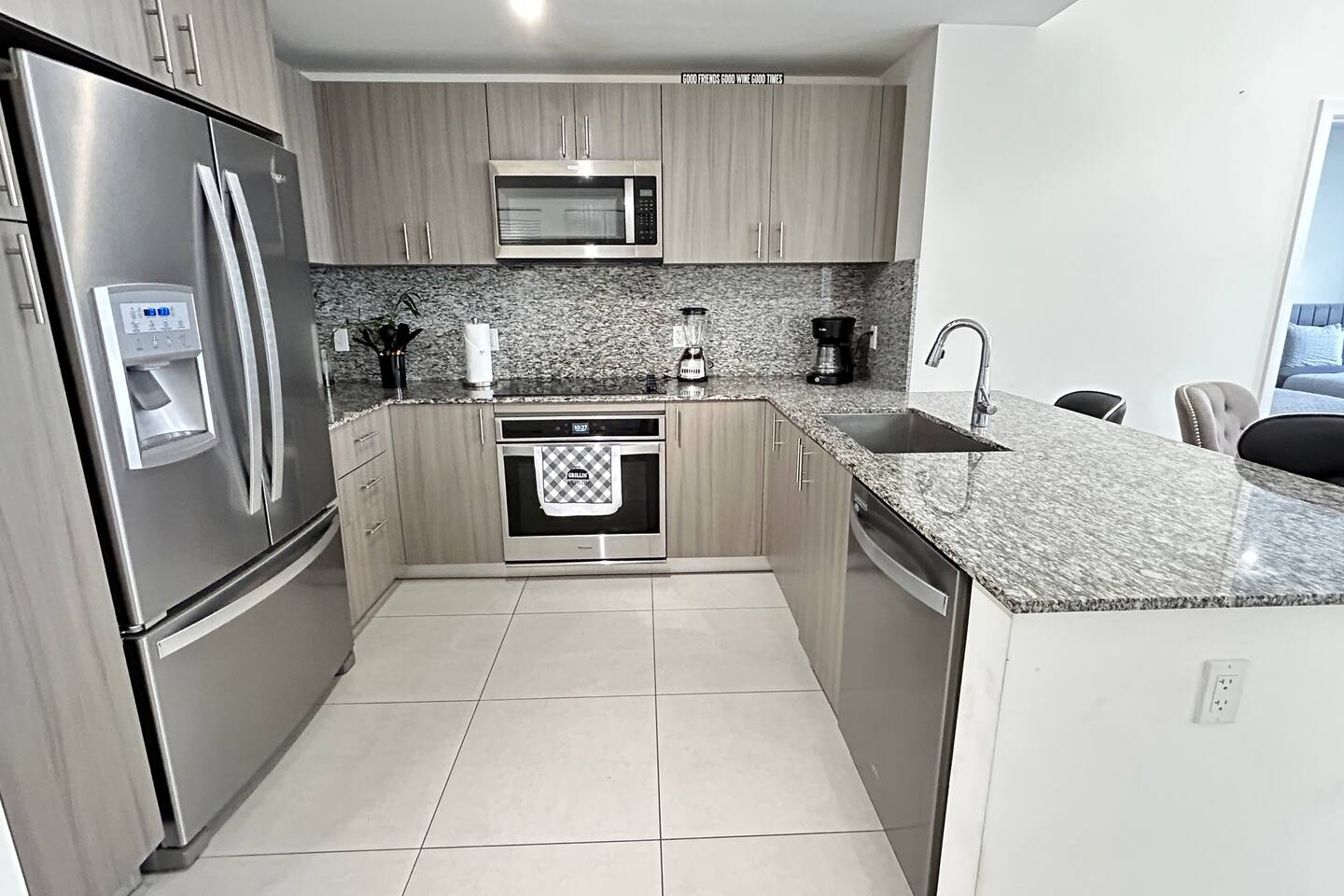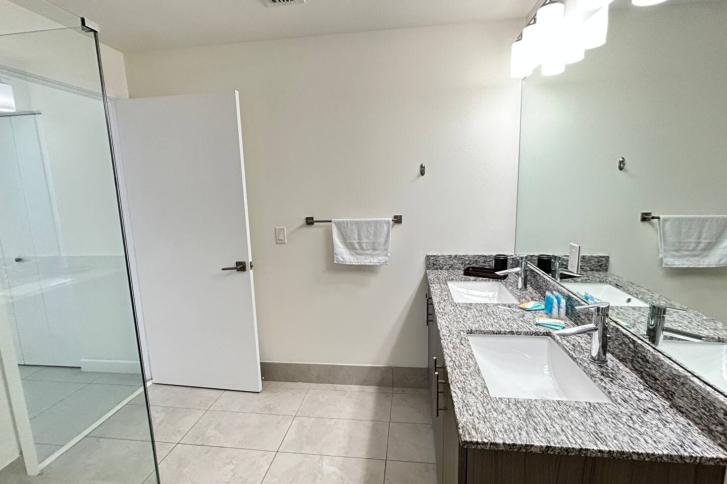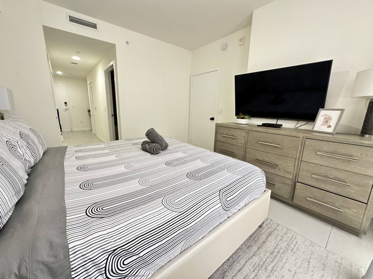 ROOMS: This apartment sleeps 6 guests. Please see below for bed count: - Room 1: King bed with a smart TV and private bathroom attached. (Sleeps 2) - Room 2: Two Queen beds with a smart TV and private bathroom attached. (sleeps 4) BATHROOMS: 2 full bathrooms fully stocked with shampoo, conditioner, body wash, hand soap, wash cloths, towels, and a hair dryer. KITCHEN AND DINING: Fully stocked with pots & pans, plates, cups, mugs, utensils, cooking tools, coffee pot, toaster, oven, refrigerator, and microwave. The dining area has a table and a bar spaced with seating for 6, with all the necessary dinnerware. OUTDOOR SPACE: There is a spacious balcony area overlooking the city of Doral with lounge furniture to enjoy the South Florida weather. PARKING: Free parking is available in the building's car garage for 1 car. If you will be bringing an additional vehicle, there is paid street parking available in front of the building. WHAT'S INCLUDED: Free wifi, We provide a starter pack of essentials (toilet paper, paper towels, & toiletry) for your first few nights. You may need to purchase more depending on use. MAIL POLICY: We are unable to accept mail or packages at this unit as we do not have access to the mailbox. Please refrain from having mail delivered to this address. Instead, consider using a P.O. Box or an Amazon Locker for your deliveries! DRIVING DISTANCES: Miami International Airport: 20 mins Miami beach: 25 Mins Downtown Miami: 25 Mins Wynwood: 25 Mins Downtown Doral: 2 Mins Doral City Place: 5 mins Dolphin Mall: 10 mins International Mall: 8 mins Dadeland Mall: 15 mins