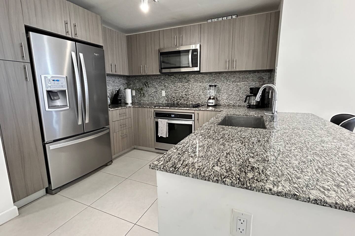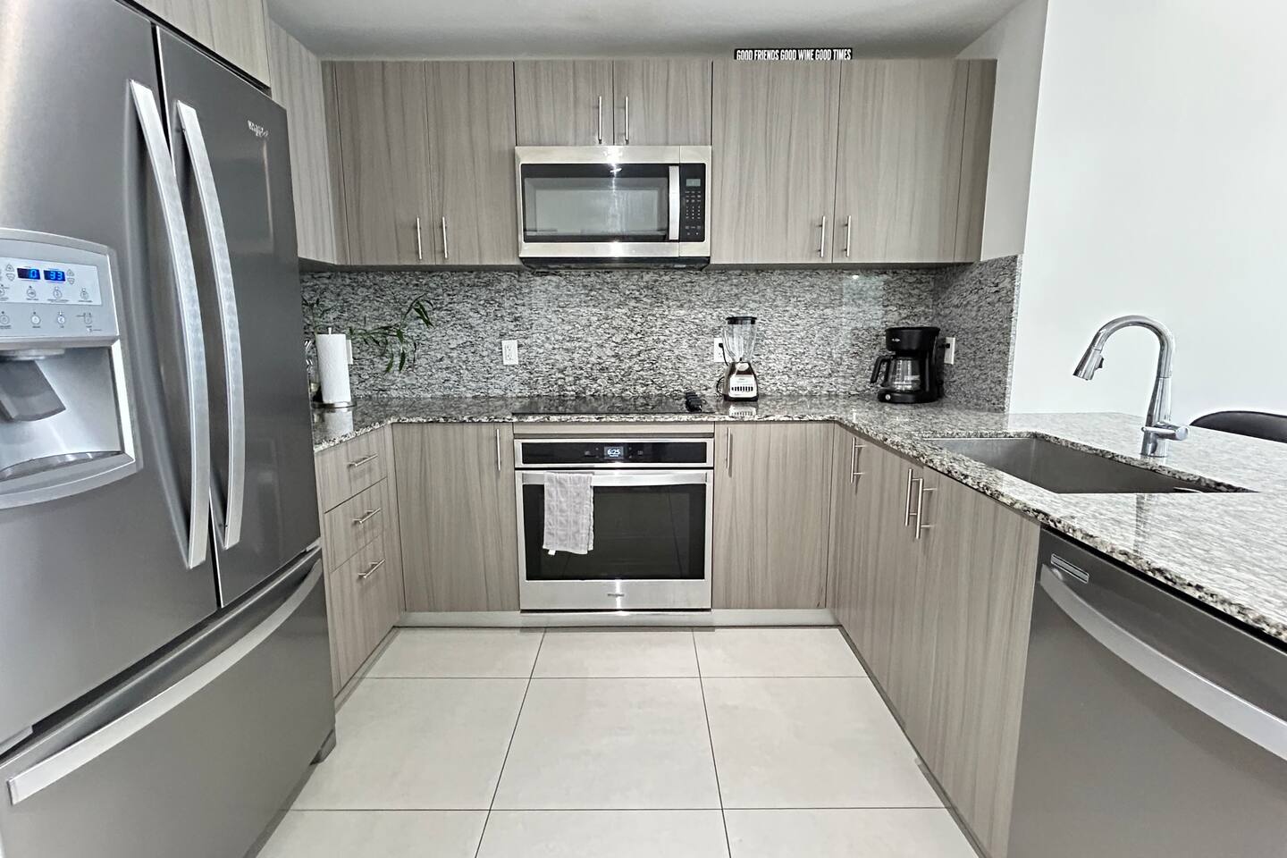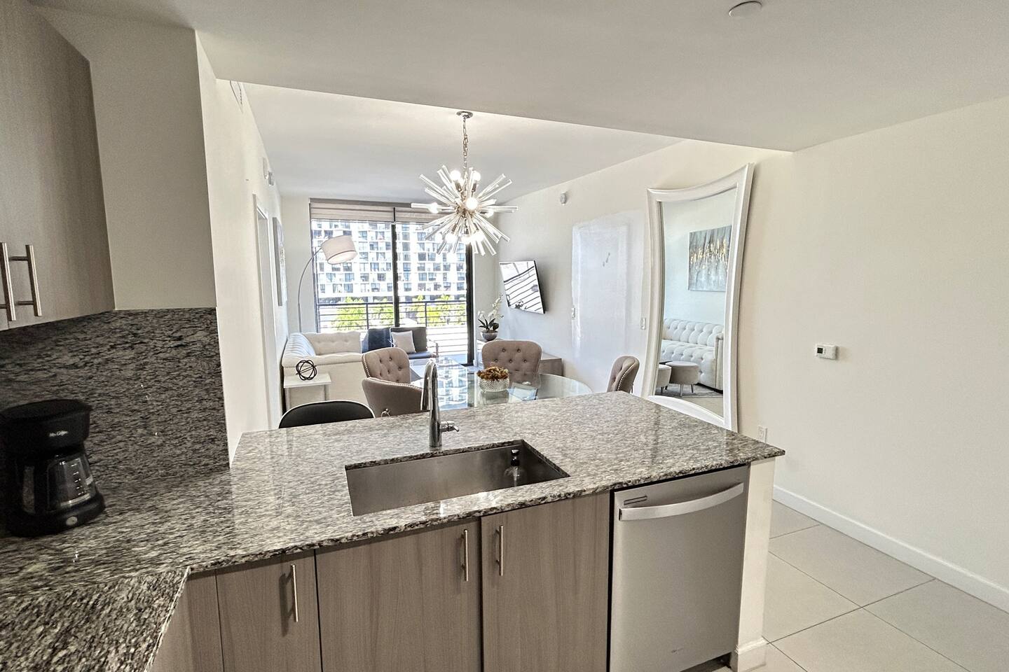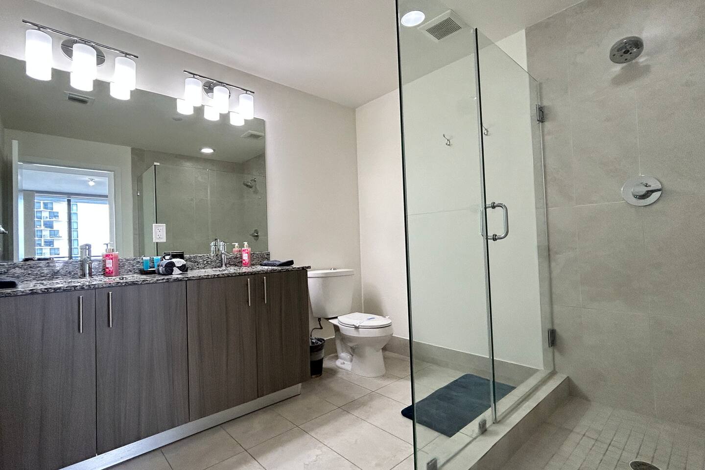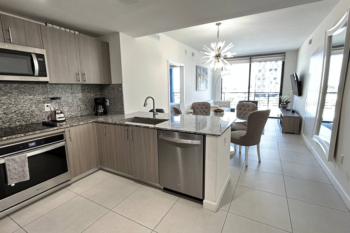 ROOMS: This apartment sleeps 6 guests. Please see below for bed count: - Room 1: King bed with a smart TV and private bathroom attached. (Sleeps 2) - Room 2: Two Queen beds with a smart TV and private bathroom attached. (sleeps 4) BATHROOMS: 2 full bathrooms fully stocked with shampoo, conditioner, body wash, hand soap, wash cloths, towels, and a hair dryer. KITCHEN AND DINING: Fully stocked with pots & pans, plates, cups, mugs, utensils, cooking tools, coffee pot, toaster, oven, refrigerator, and microwave. The dining area has a table and a bar spaced with seating for 6, with all the necessary dinnerware. OUTDOOR SPACE: There is a spacious balcony area overlooking the city of Doral with lounge furniture to enjoy the South Florida weather. PARKING: Free parking is available in the building's car garage for 1 car. If you will be bringing an additional vehicle, there is paid street parking available in front of the building. WHAT'S INCLUDED: Free wifi, We provide a starter pack of essentials (toilet paper, paper towels, & toiletry) for your first few nights. You may need to purchase more depending on use. MAIL POLICY: We are unable to accept mail or packages at this unit as we do not have access to the mailbox. Please refrain from having mail delivered to this address. Instead, consider using a P.O. Box or an Amazon Locker for your deliveries! DRIVING DISTANCES: Miami International Airport: 20 mins Miami beach: 25 Mins Downtown Miami: 25 Mins Wynwood: 25 Mins Downtown Doral: 2 Mins Doral City Place: 5 mins Dolphin Mall: 10 mins International Mall: 8 mins Dadeland Mall: 15 mins