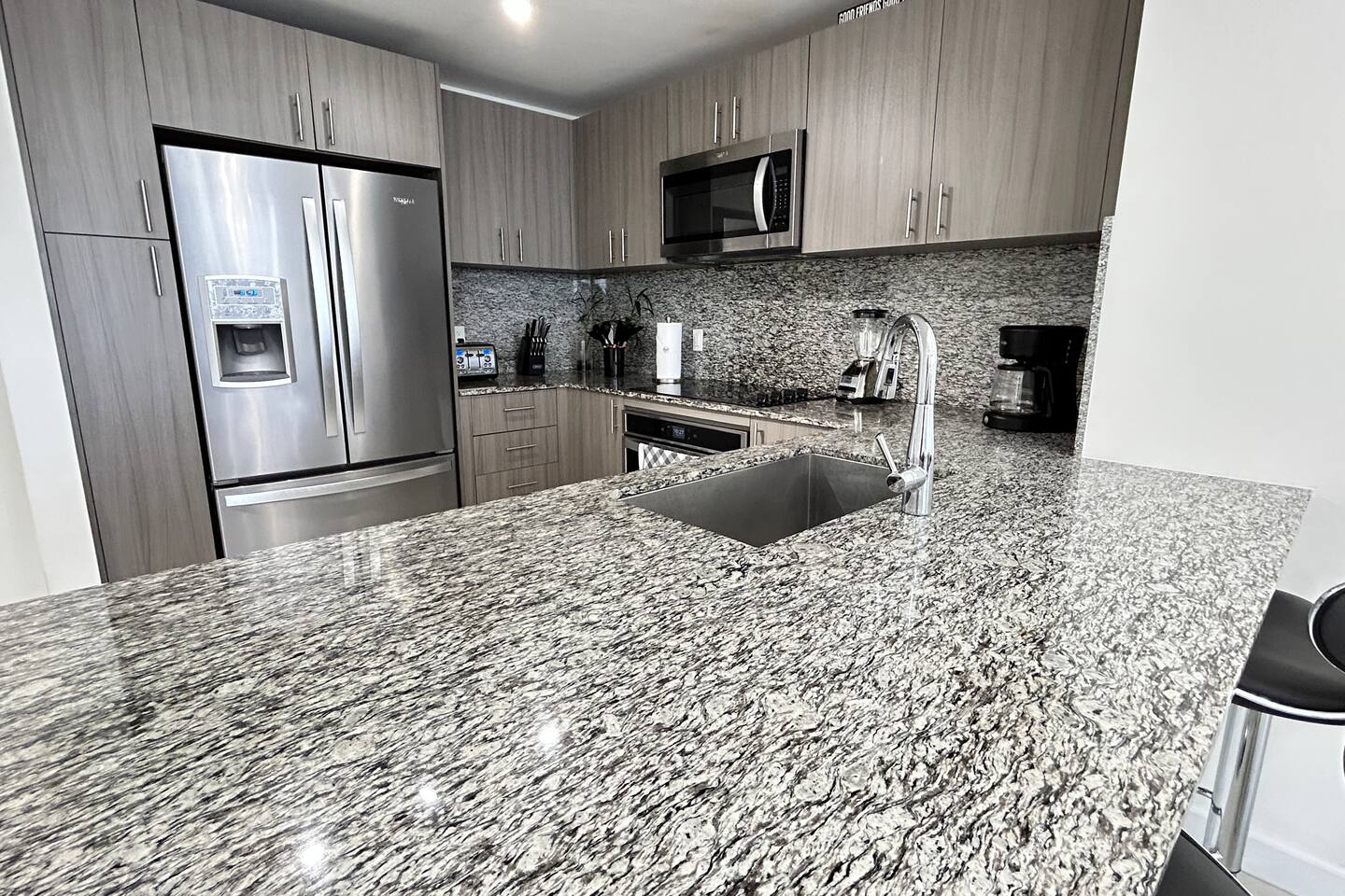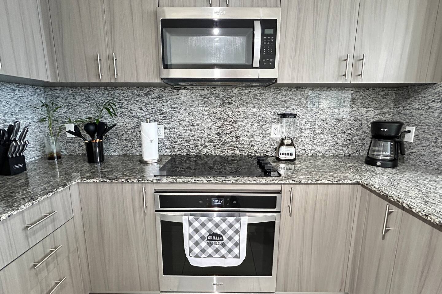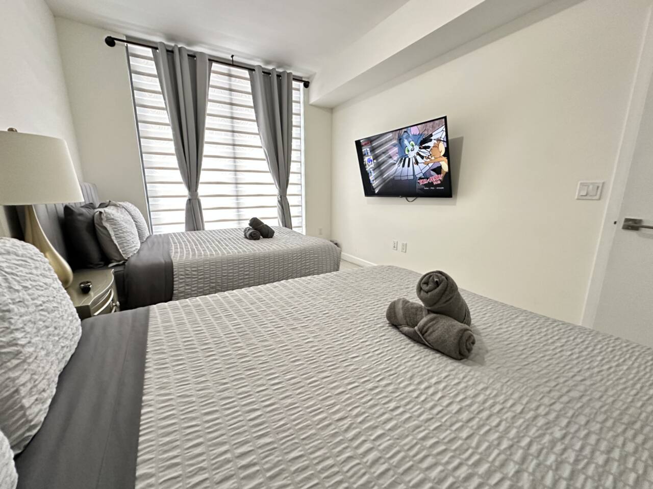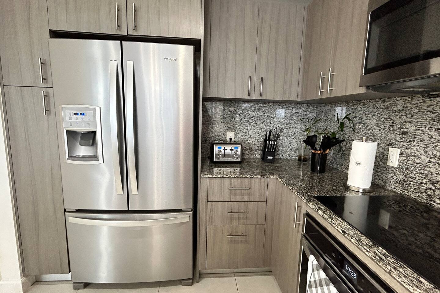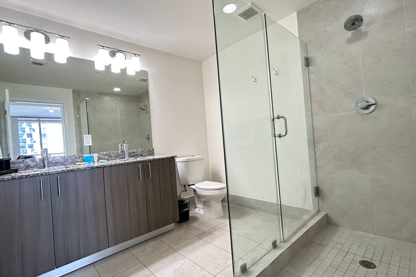 ROOMS: This apartment sleeps 6 guests. Please see below for bed count: - Room 1: King bed with a smart TV and private bathroom attached. (Sleeps 2) - Room 2: Two Queen beds with a smart TV and private bathroom attached. (sleeps 4) BATHROOMS: 2 full bathrooms fully stocked with shampoo, conditioner, body wash, hand soap, wash cloths, towels, and a hair dryer. KITCHEN AND DINING: Fully stocked with pots & pans, plates, cups, mugs, utensils, cooking tools, coffee pot, toaster, oven, refrigerator, and microwave. The dining area has a table and a bar spaced with seating for 6, with all the necessary dinnerware. OUTDOOR SPACE: There is a spacious balcony area overlooking the city of Doral with lounge furniture to enjoy the South Florida weather. PARKING: Free parking is available in the building's car garage for 1 car. If you will be bringing an additional vehicle, there is paid street parking available in front of the building. WHAT'S INCLUDED: Free wifi, We provide a starter pack of essentials (toilet paper, paper towels, & toiletry) for your first few nights. You may need to purchase more depending on use. MAIL POLICY: We are unable to accept mail or packages at this unit as we do not have access to the mailbox. Please refrain from having mail delivered to this address. Instead, consider using a P.O. Box or an Amazon Locker for your deliveries! DRIVING DISTANCES: Miami International Airport: 20 mins Miami beach: 25 Mins Downtown Miami: 25 Mins Wynwood: 25 Mins Downtown Doral: 2 Mins Doral City Place: 5 mins Dolphin Mall: 10 mins International Mall: 8 mins Dadeland Mall: 15 mins