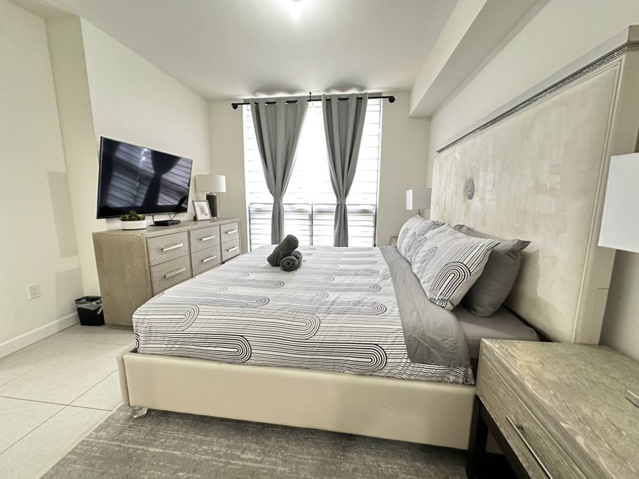 This 2-bedroom, 2-bath apartment sleeps 6 and is perfect for family or business stays. 🛏️ King & 2 Queen Beds 🛁 2 Full Bathrooms 🍽️ Fully Equipped Kitchen 🌇 Balcony with City Views 🌊 Pool & Gym Access 🚗 Free Parking 📍 Walk to Downtown Doral, Close to Miami Beach, Downtown Miami, Wynwood, & Doral City Place. 🌟 Perfect for relaxation & productivity ✨ Book your stay today and enjoy comfort & convenience.