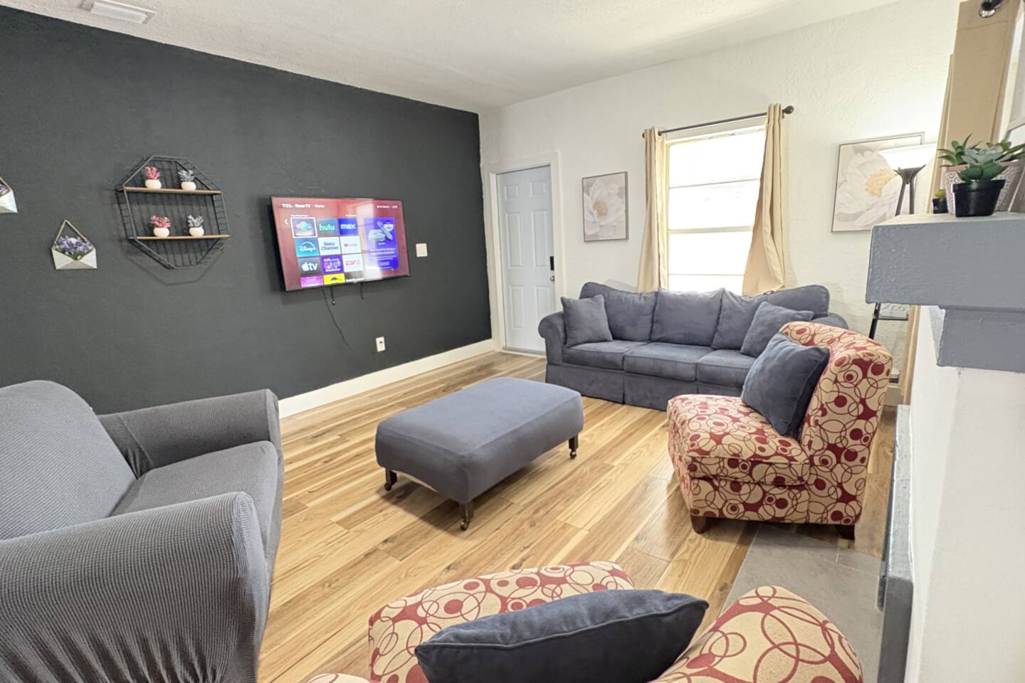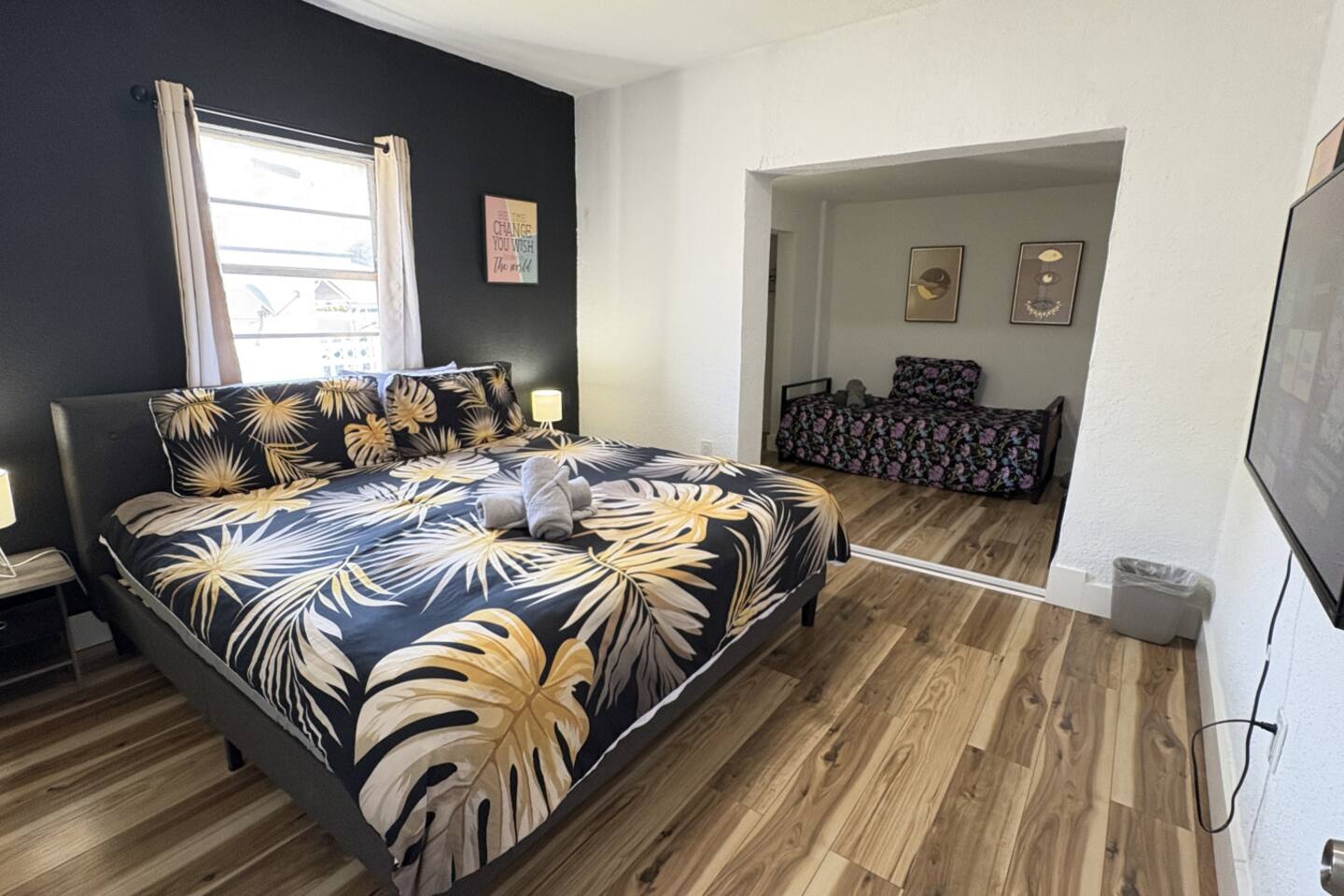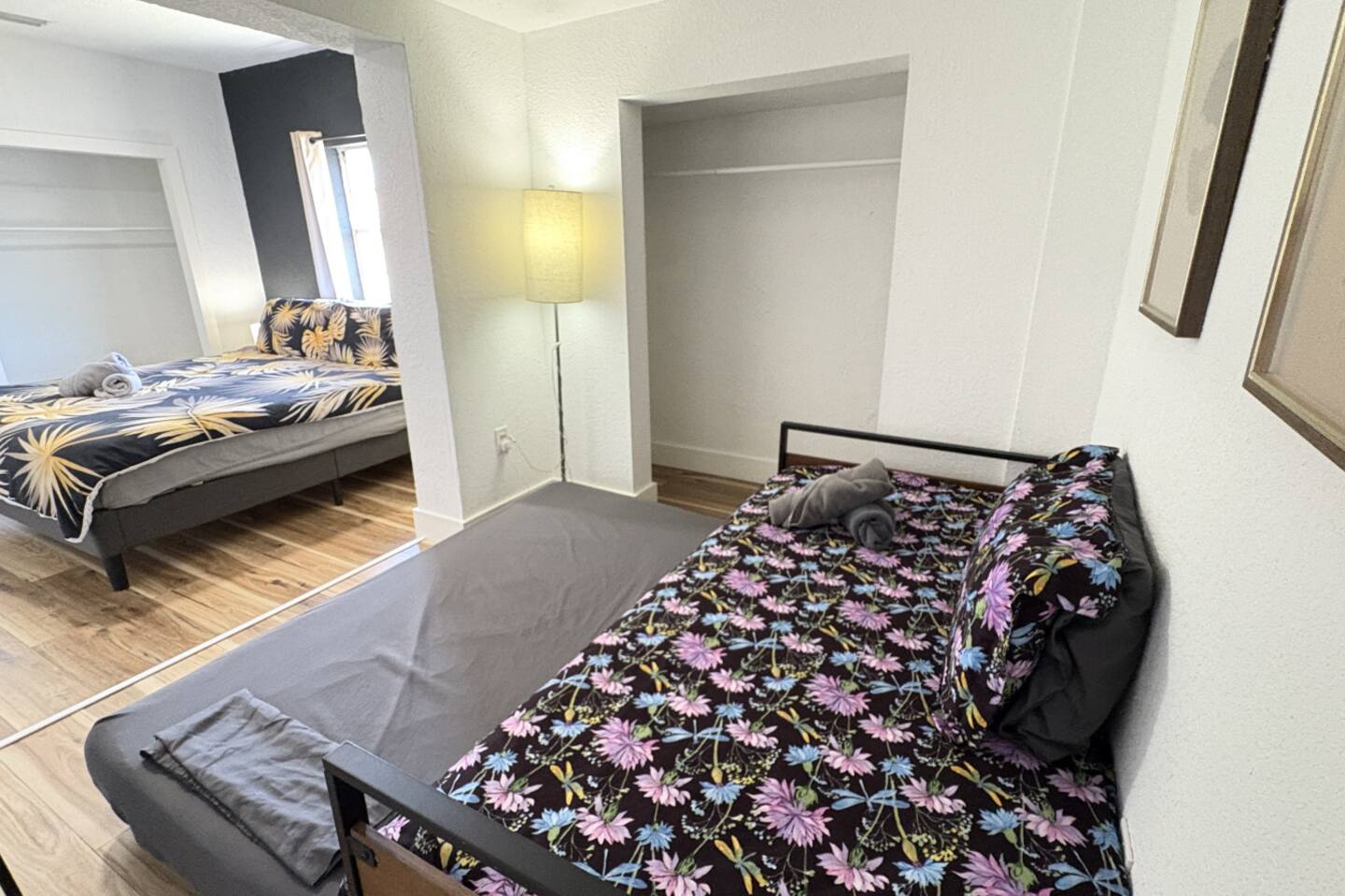 3 bedrooms 2 bathrooms. ROOMS: This house sleeps 10 guests. Please see below for bed count: - Room 1: 2 Full beds (Sleeps 4) - Room 2: Queen with a private bathroom (sleeps 2) - Room 3: King bed and trundle twin beds with a smart TV (sleeps 4) BATHROOMS: 2 Full bathrooms fully stocked with shampoo, conditioner, body wash, hand soap, wash cloths, towels, and a hair dryer. KITCHEN AND DINING: Fully stocked with pots & pans, plates, cups, mugs, utensils, cooking tools, coffee pot, toaster, oven, refrigerator, and microwave. The dining area has plenty of seating with all the necessary dinnerware. PARKING: Free parking is available in the driveway and parallel parking space in front of the house. WHATS INCLUDED: Iron and ironing board, free wifi, smart TV with Netflix and Hulu (must use your own account) all kitchen essentials, We provide a starter pack of essentials (toilet paper, paper towels, & toiletry) for your first few nights. You may need to purchase more depending on use. DRIVING DISTANCES: Loandepot park formerly known as Marlins Stadium: 1 Min drive/5 Min walk Airport: 10 min Miami Bch: 15 min Wynwood: 10min Brickell: 10min Downtown: 10 Min