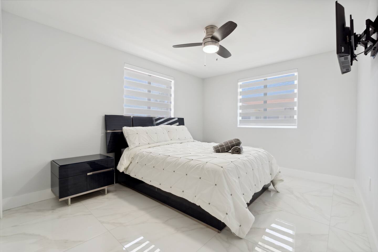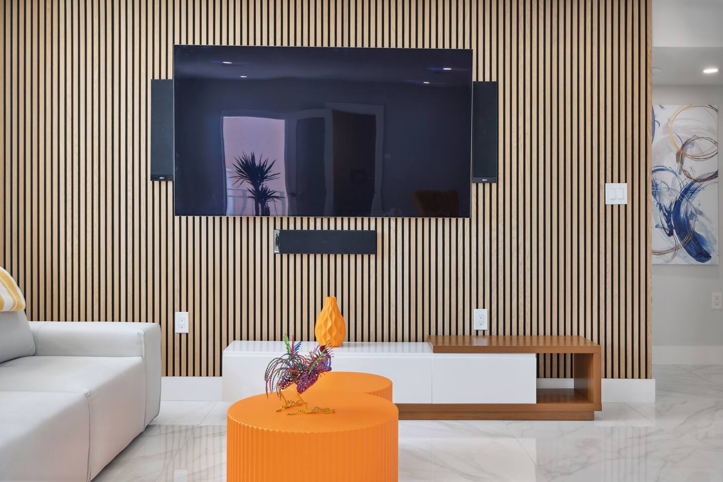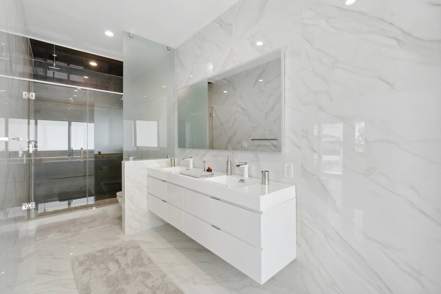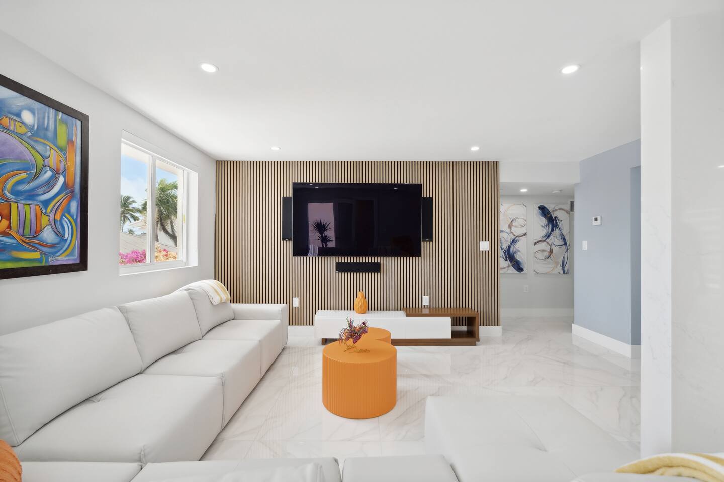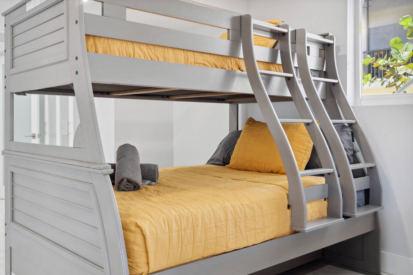 Spread across three stories, this home offers ample space for relaxation and entertainment. Marvel at the sleek marble floors and modern design that runs throughout, creating an atmosphere of sophistication. FIRST FLOOR Bedroom 1: Two bunk beds with a full mattress and a twin on the top with a private bathroom attached (sleeps 6) LIVING ROOM/ GAME ROOM Couch with Smart TV Ping Pong Table SECOND FLOOR Bedroom 2: Queen bed with a private bathroom attached (sleeps 2) Bedroom 3: Two full sized beds with a private bathroom attached (sleeps 4) LIVING ROOM Sectional Couch with Smart TV KITCHEN Open concept kitchen with counter seating and a dining table BALCONY Wrap around balcony for unbelievable views and plenty of seating and loungers for total relaxation. THIRD FLOOR Bedroom 4: King sized bed with a private wrap around porch and private luxury spa master bath (sleeps 2) Parking and Dock: Park up to 8 cars with ease, ensuring that everyone in your group has convenient access. If you're arriving by boat, take advantage of the private dock with a dedicated spot for your watercraft or a boat. Must inform us beforehand. Outdoor Bliss: Lounge by the small private swimming pool or enjoy a meal on the outdoor furniture, surrounded by lush greenery. The wrap-around balcony on the second and third floors offers panoramic views, creating the perfect backdrop for your morning coffee or evening cocktails. Gourmet Kitchen: The heart of the home, our open-concept kitchen is fully equipped with modern appliances and updated hardware. Prepare delicious meals with ease, and gather around the spacious dining area for memorable dinners. WHATS INCLUDED: Free Wi-Fi, We provide a starter pack of essentials (toilet paper, paper towels, & toiletry) for your first few nights. You may need to purchase more depending on use