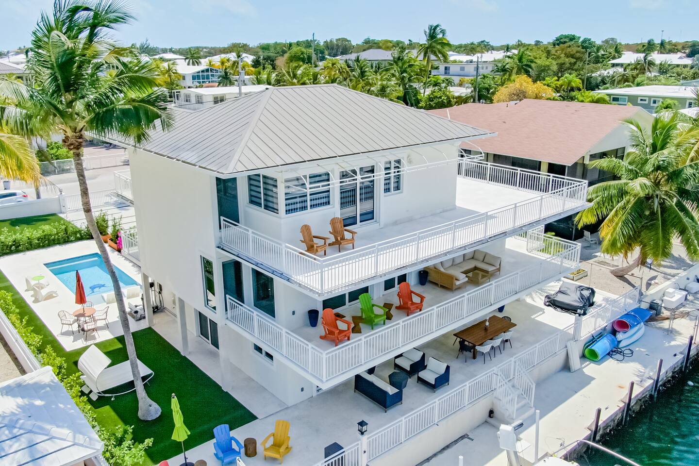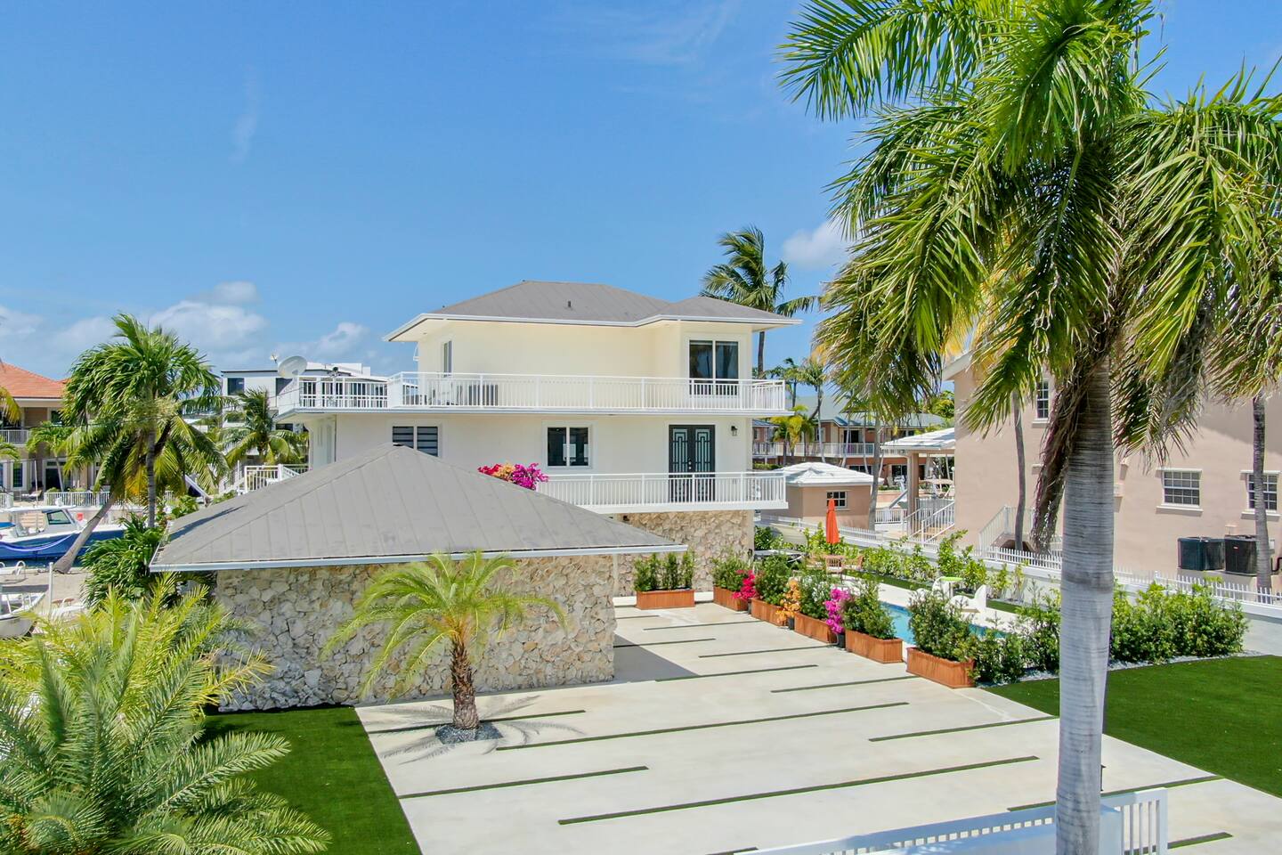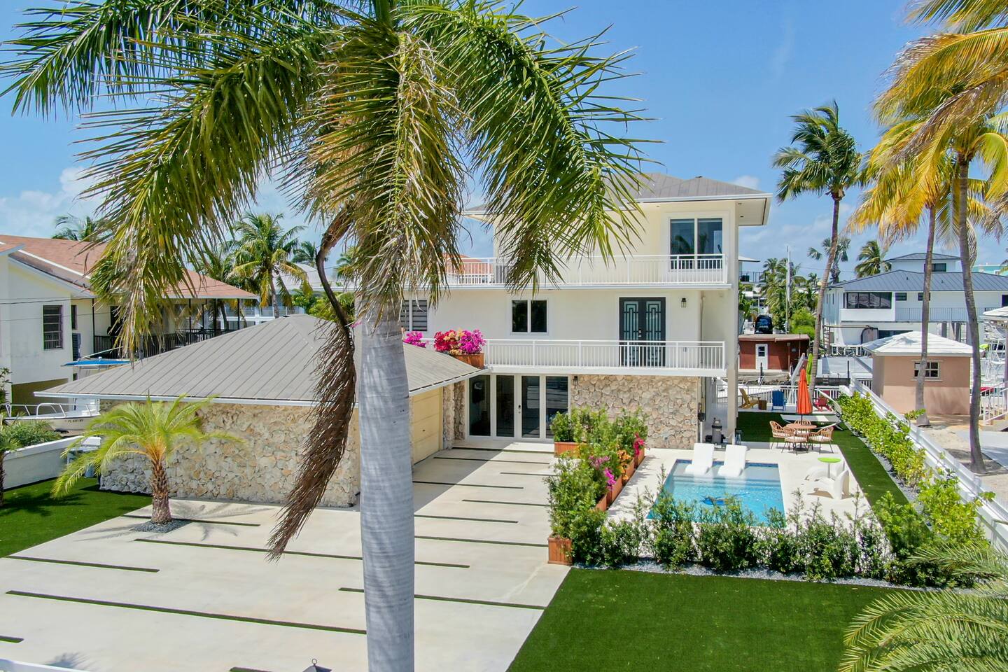 Escape to luxury in this stunning three-story modern pool home, which includes a boat dock. This modern open-concept design is the perfect retreat for families or groups seeking a memorable getaway. Nestled in the sought-after neighborhood of Port Largo in Key Largo, our home offers both tranquility and accessibility by car and boat. Explore the nearby attractions, beaches, and local points of interest, making your stay an unforgettable experience